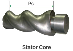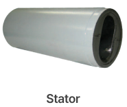The stator is a rubber female screw with an elongated hole of double internal helix.