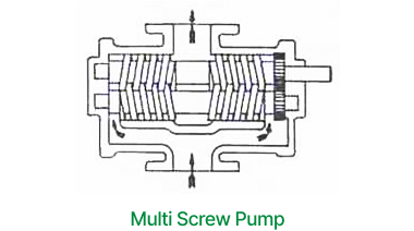 In 1930, a french engineer, Rene Moineau devised a new principle to continuously transfer liquids. He came to invent a new rotary positive displacement pump using this principle. This new pump is often called as Mono Pump after the name of inventor, Rene Moineau, but classifying it by its transferring mechanism, it can be called as an Eccentric Screw Pump, a kind of screw pump among rotary positive displacement pumps. In addition to these, various names such as Progressive Cavity Pump, Helical Rotor Pump, and Eccentric Worm Pump etc. are used for mono pumps. However, please note that Eccentric Screw Pumps(Mono Pumps) are quite different from Multi-axis Screw Pumps, or Archimedean Screw Pumps as below.