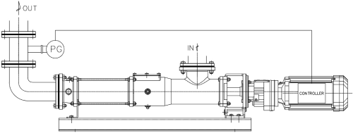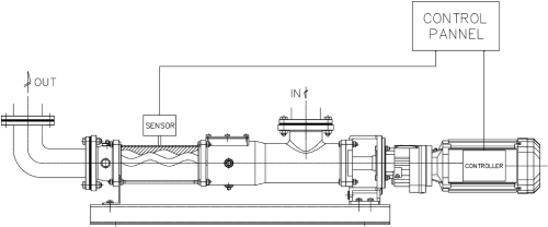 The flow rate of the mono pump can be easily controlled by adjusting the rotation speed of the pump with an inverter or variater. Unlike the centrifugal pump, It is prohibitted to install a control valve on the discharge side.