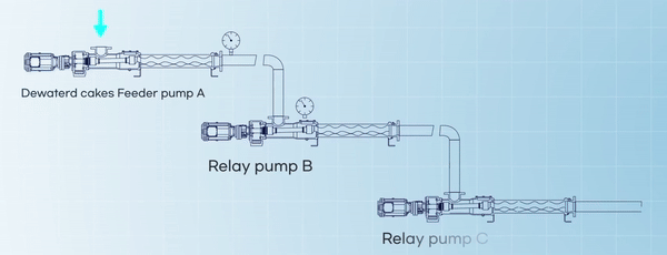 In this case, a paddle mixer may be installed above the pump inlet to stir and degas the dehydrated cake as pretreatment, thereby minimizing air intake and improving pump performance.