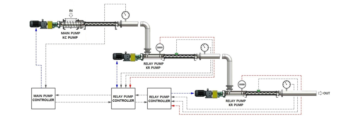 Long distance transfer is possible by connecting KC type (main feeding pump) and KR type (relay pump) in series. If long-distance transfer is required, please contact us.