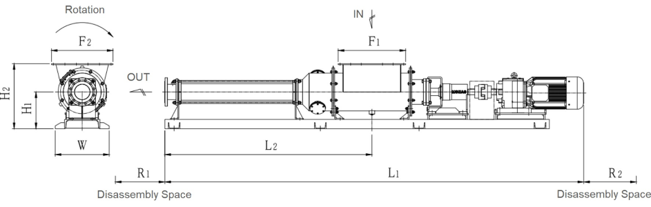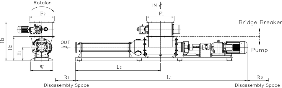 | Pump | Mixer | L1 | L2 | H1 | H2 | H3 | F1 | F2 | R1 | R2 | W | ||||||||