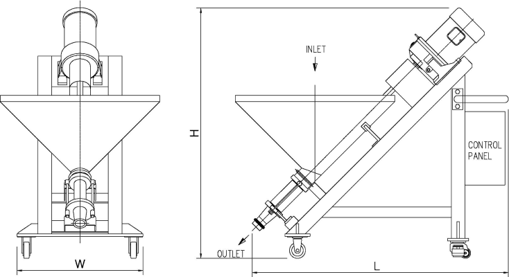 Hopper and pump are integrated. The liquid is temporarily stored in the hopper and dispensed as needed. Since it is easy to disassemble and clean, it is optimal for food or liquids that easily solidify