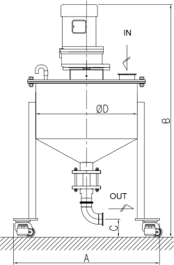 액을 저장하는 탱크에 수직형 모노펌프를 부착하여 일체화시켜 액의 저장과 이송을 할 수 있게한 타입입니다. 필요시 카플링로드에 교반날개를 여러 형태로 부착할 수도 있습니다